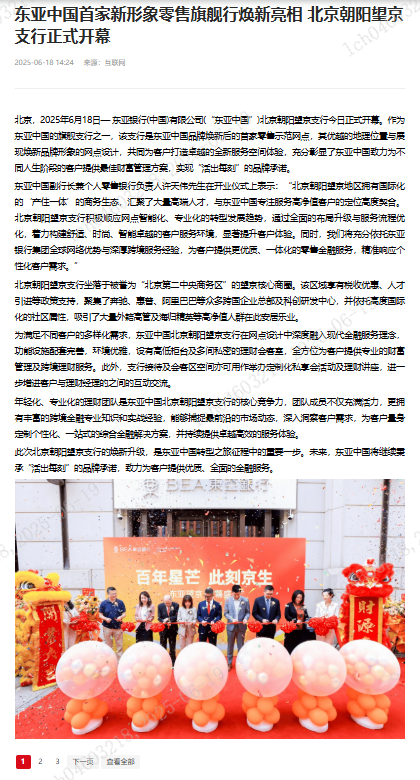 中国经营网:东亚中国首家新形象零售旗舰行焕新亮相 北京朝阳望京支行正式开幕