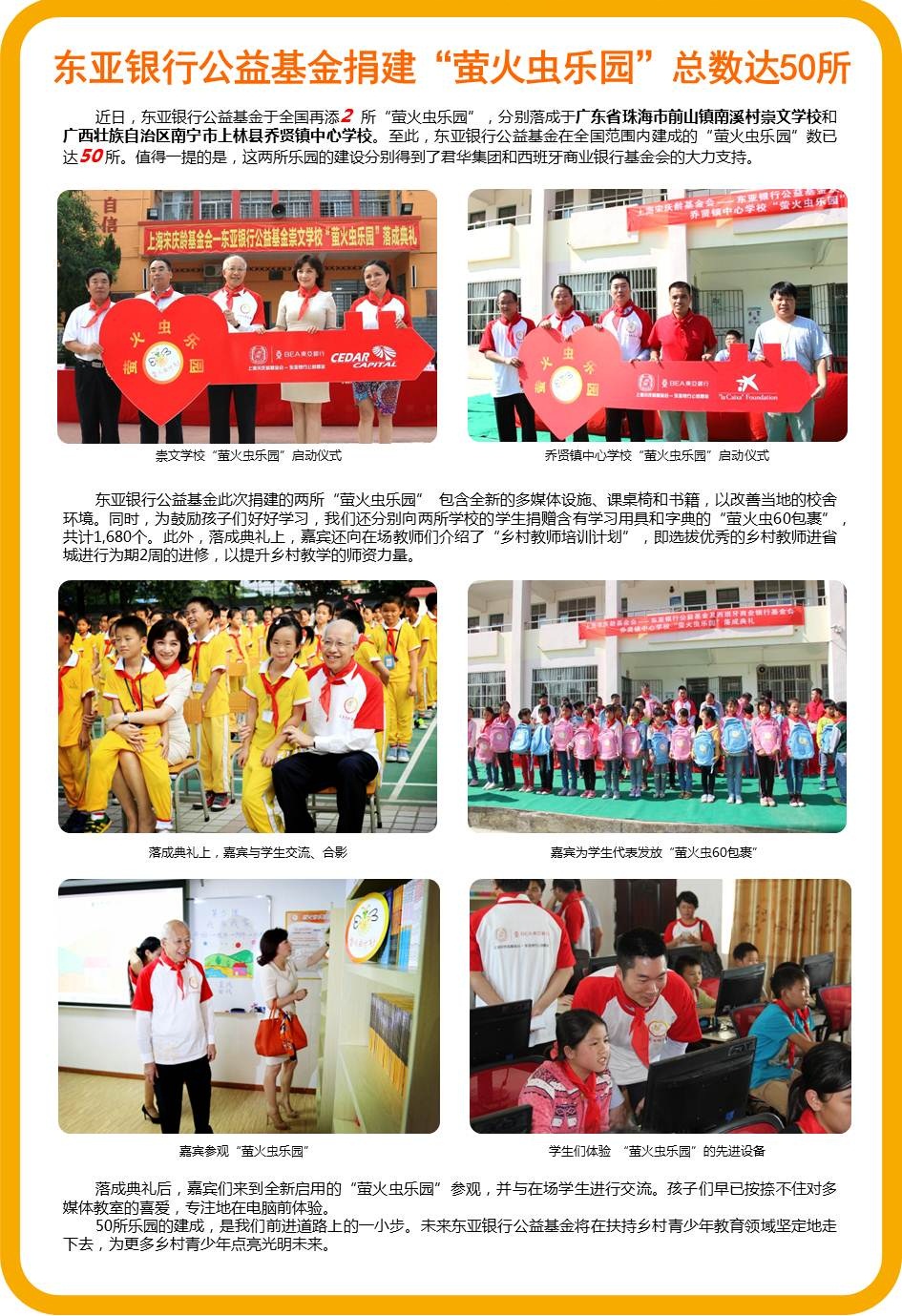 东亚银行公益基金捐建萤火虫乐园总数达50所