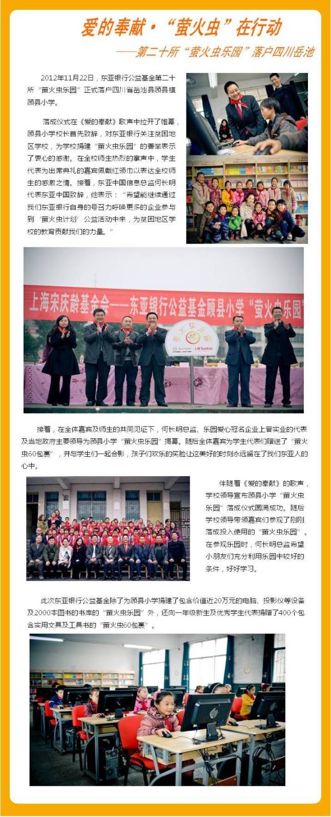 爱的奉献·“萤火虫”在行动——第二十所“萤火虫乐园”落户四川岳池