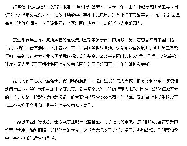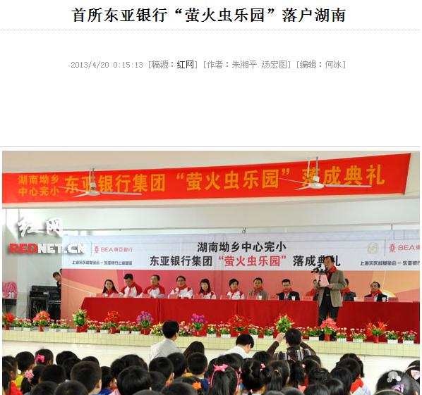 红网:首所东亚银行集团“萤火虫乐园”落户湖南
