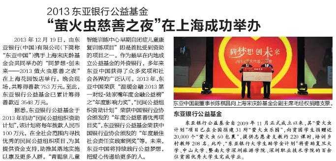 新商报:2013东亚银行公益基金“萤火虫慈善之夜”在上海成功举办