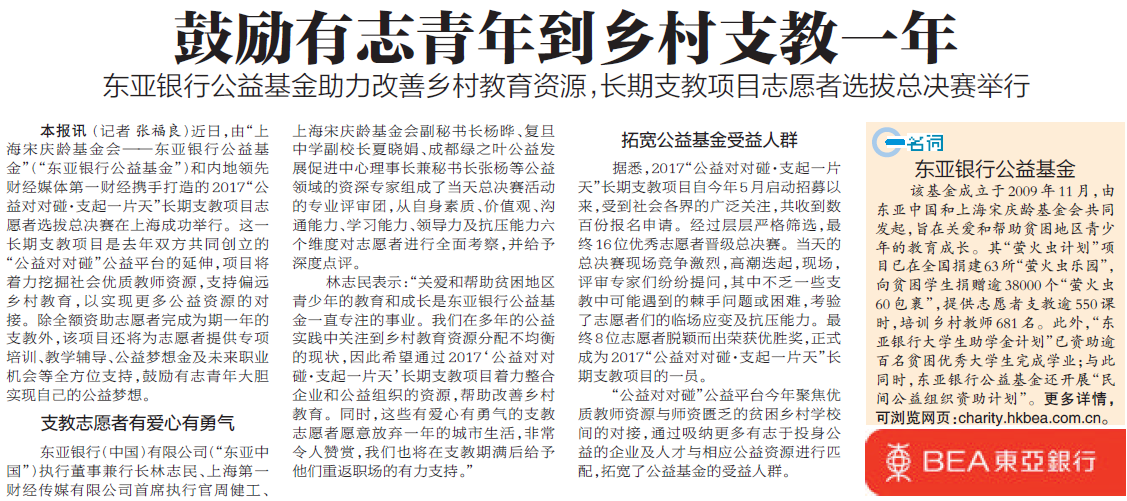 厦门日报:鼓励有志青年到乡村支教一年
