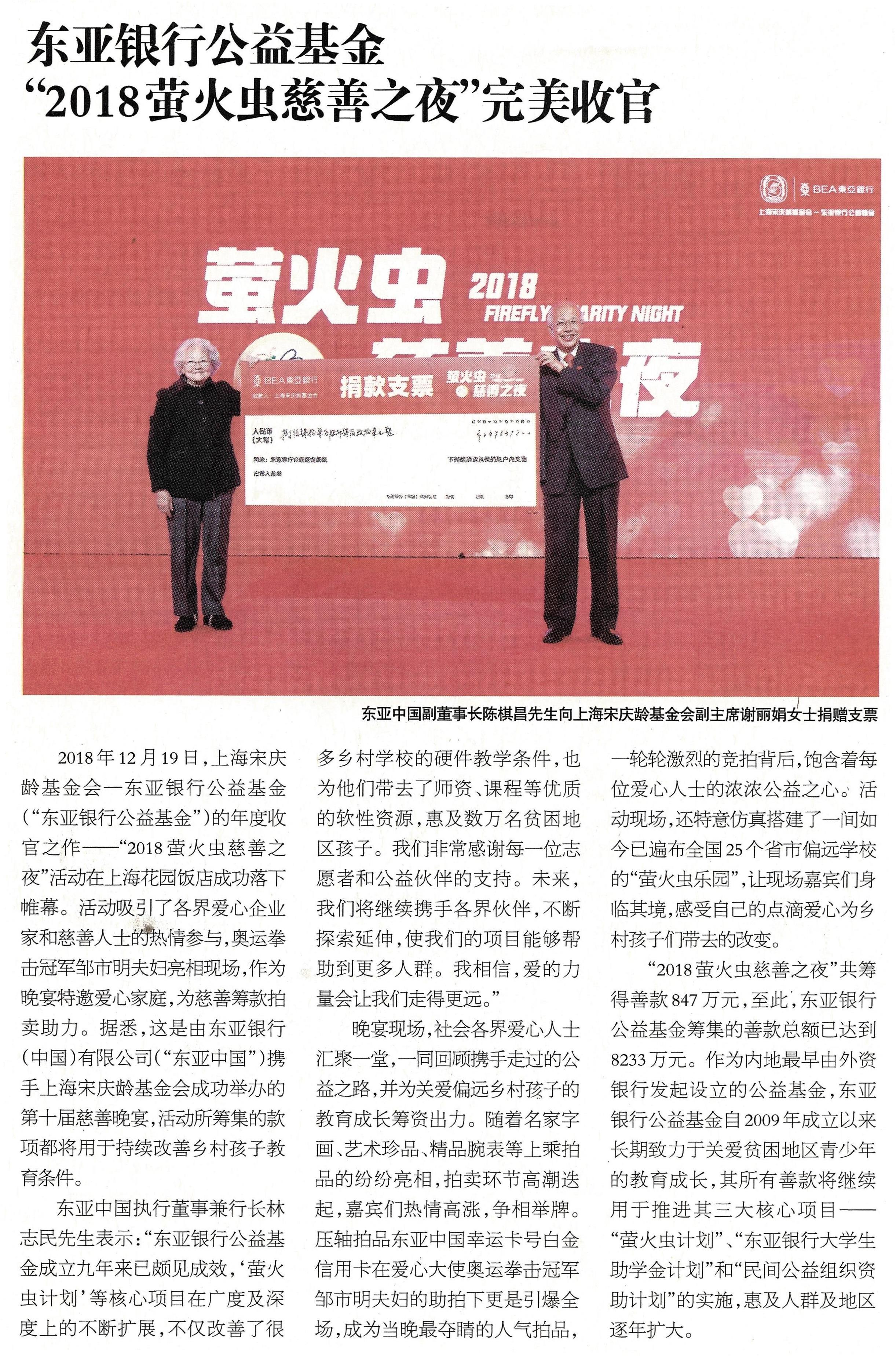 21世纪经济报道:东亚银行公益基金 “2018萤火虫慈善之夜”完美收官