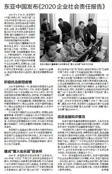 每日经济新闻:东亚中国发布《2020企业社会责任报告》