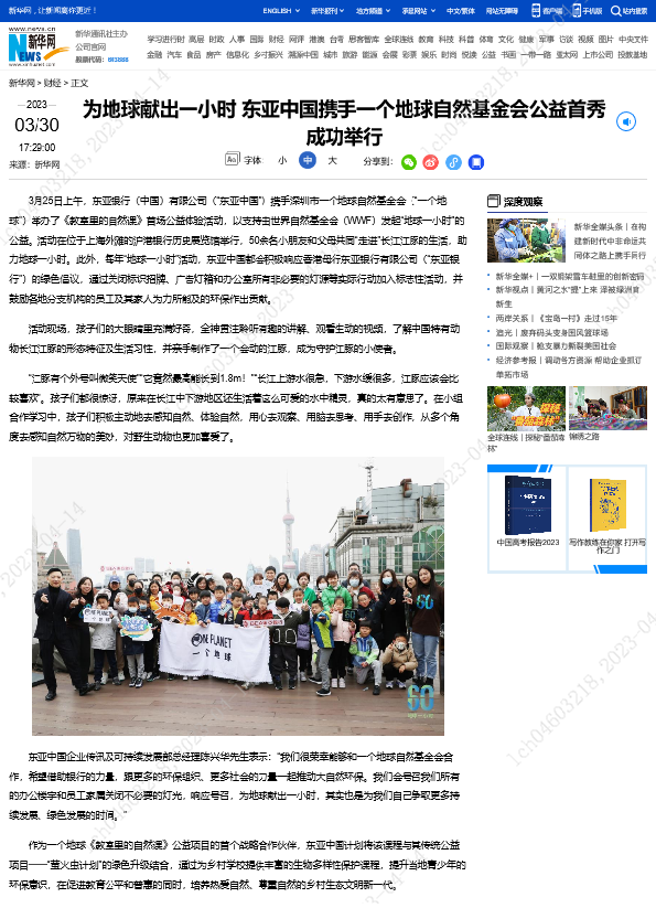 新华网:为地球献出一小时 东亚中国携手一个地球自然基金会公益首秀成功举行